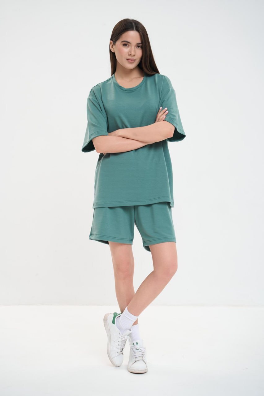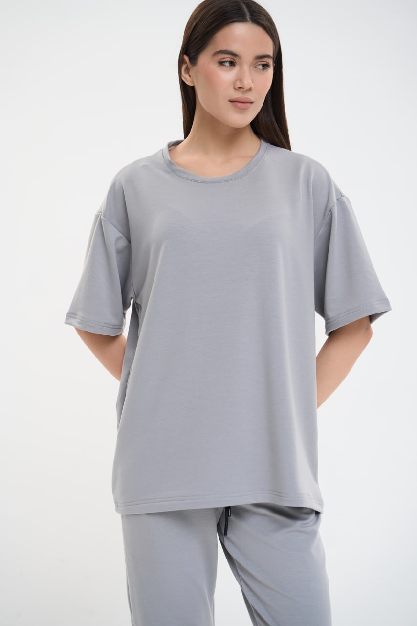 - Футболка: зі спущеним рукавом, добре лягає на плечі, не обтягує живіт