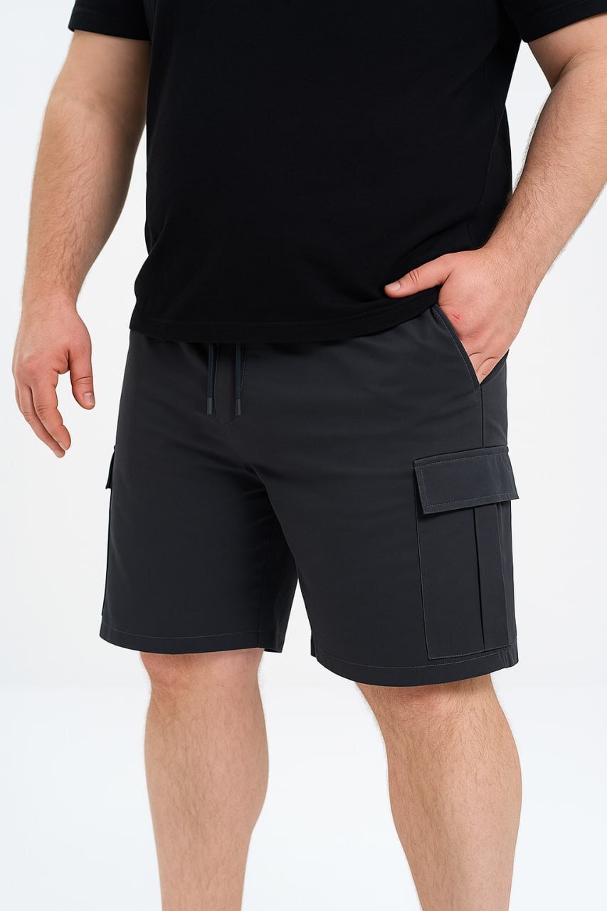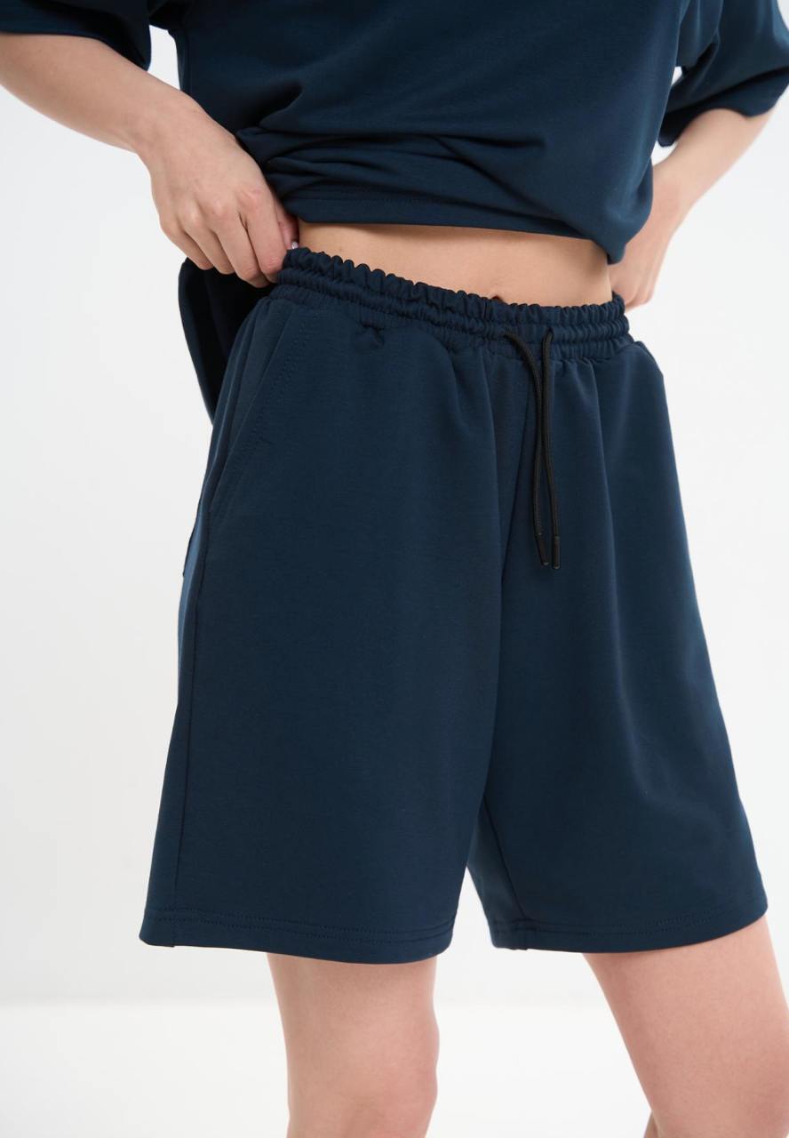 - Шорти: висока посадка, пояс на резинці зі шнурком, 3 кишені (2 бокові + 1 задня)