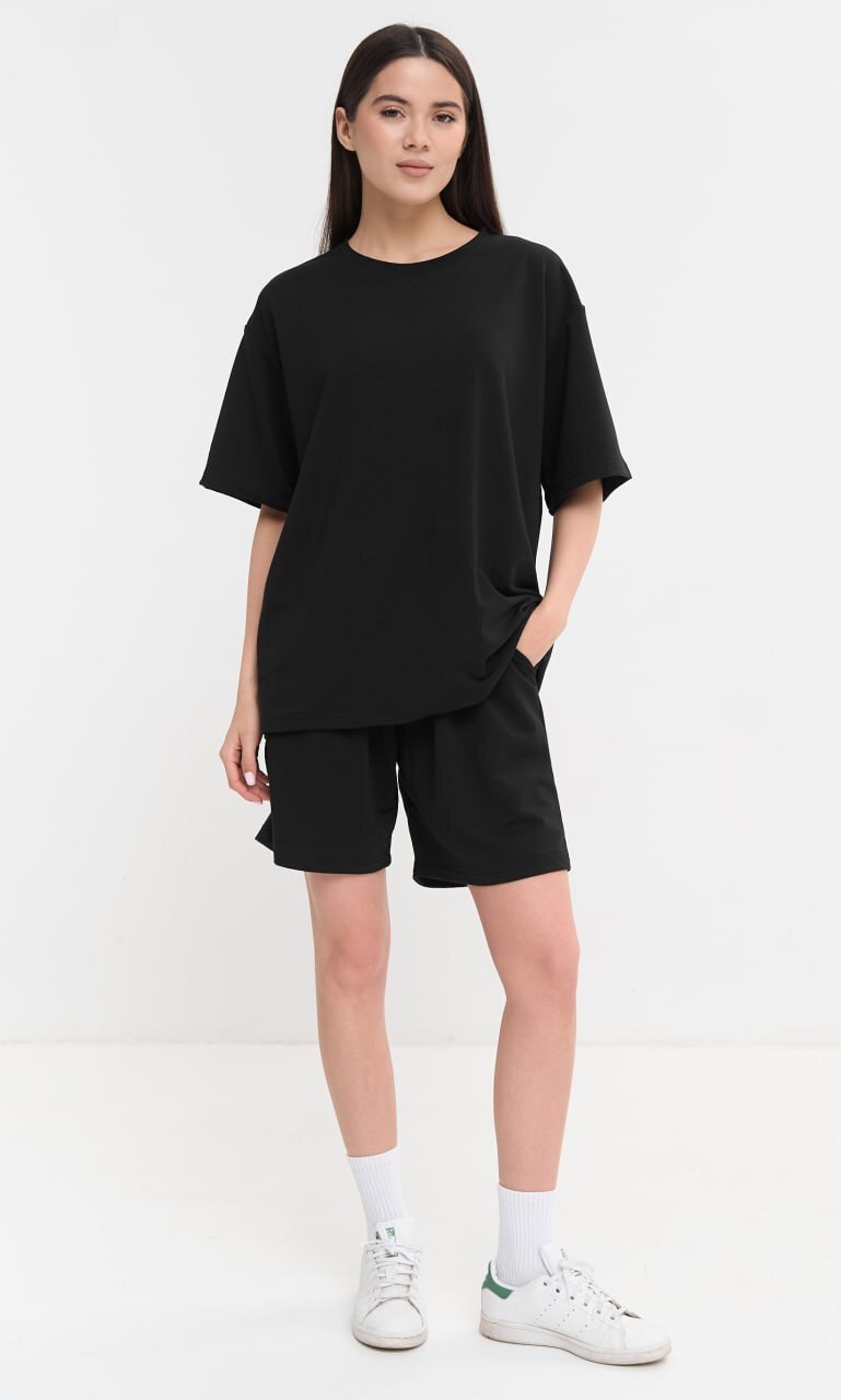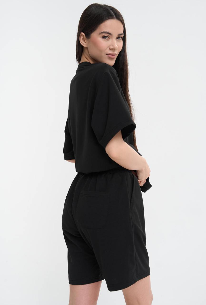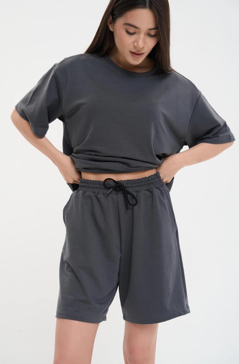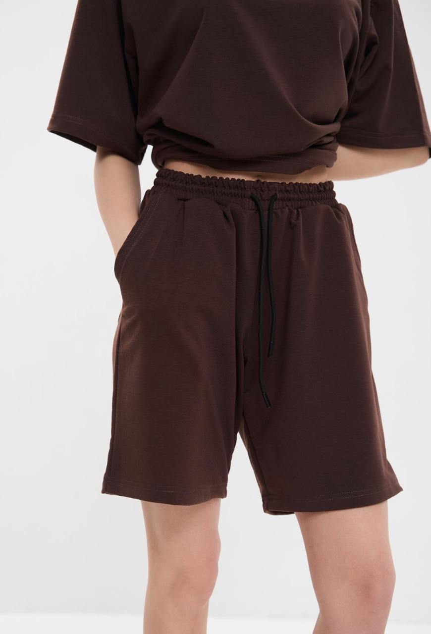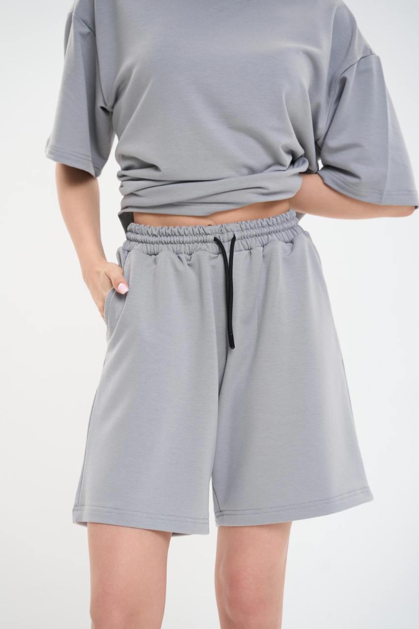 - Шорти: висока посадка, пояс на резинці зі шнурком, 3 кишені (2 бокові + 1 задня)